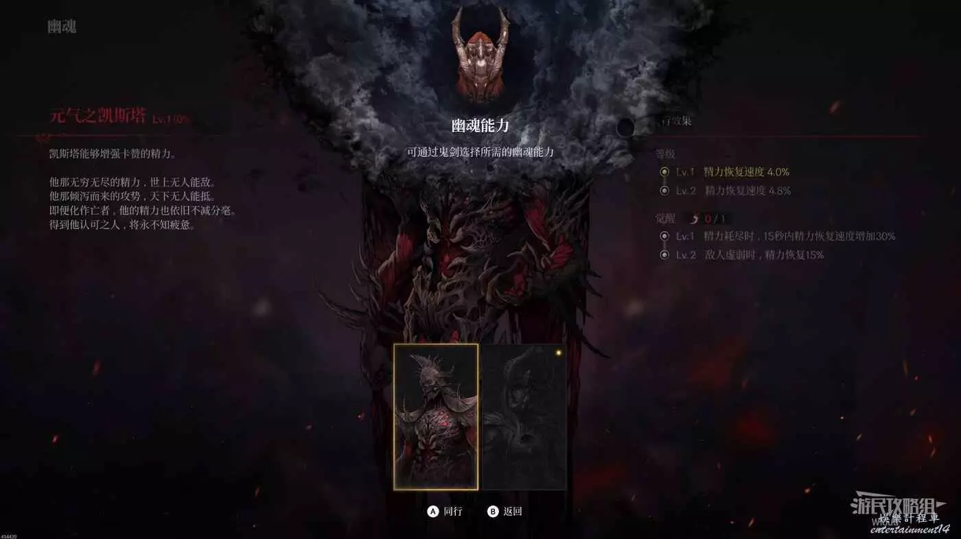 這時卡贊的身體還處於虛弱狀態,慢慢往前走,不遠處有明顯的紅色碎片,與其互動將碎片合成一把鬼劍。