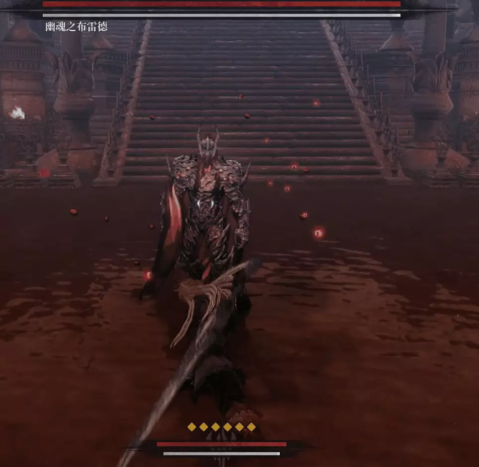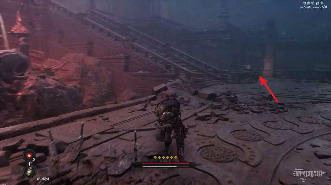 完事沿路往右前方樓梯口移動,樓梯入口紅光屍體處可以拿一個【靈魂之淚粉末】,中間需要擊敗熟悉的錘子蜥蜴人。