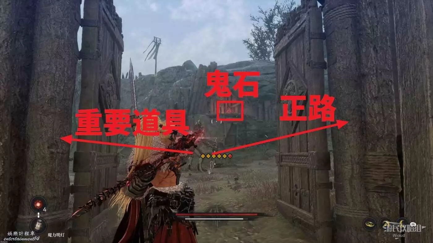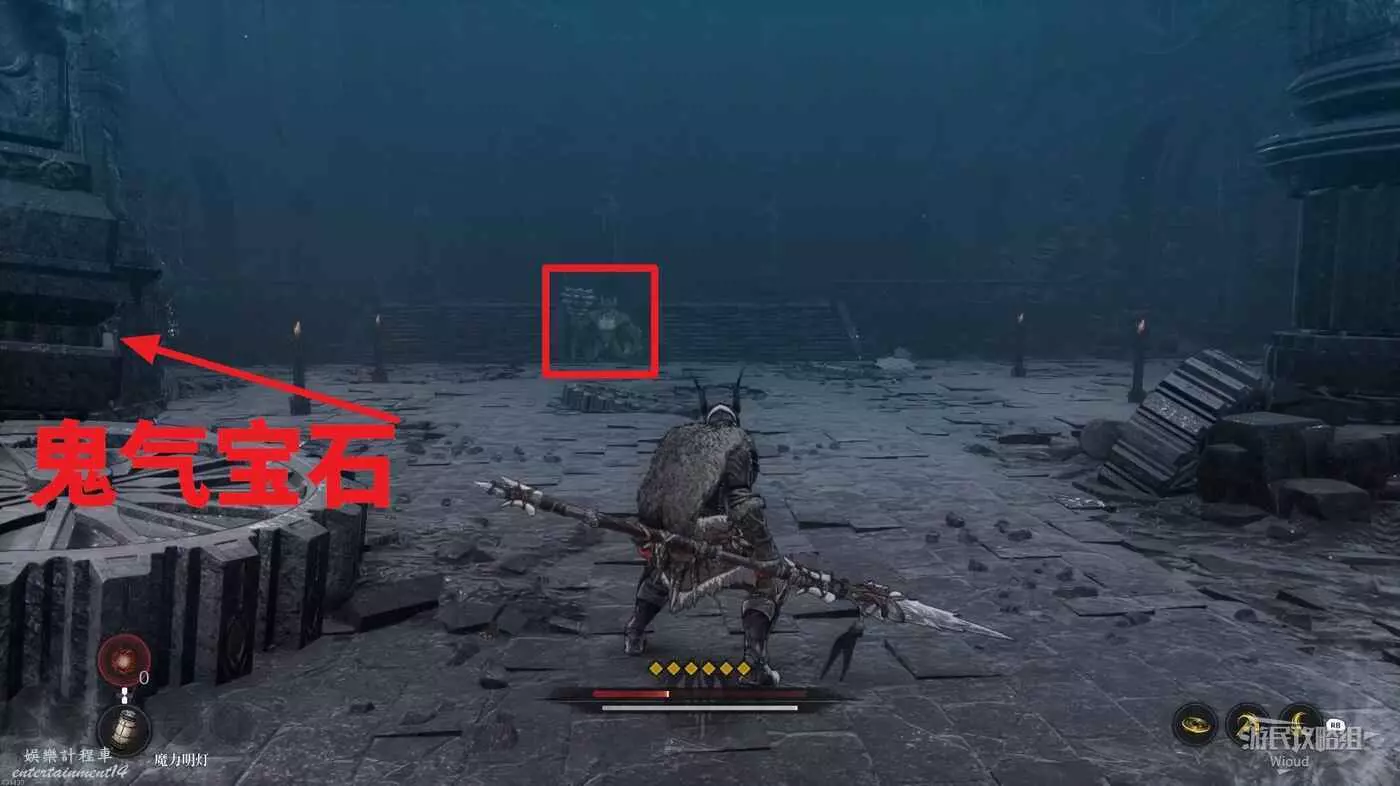 打開門就能看到高處第三個【鬼石】,可以直接拿標槍破壞,鬼石下面還有一個精英怪。