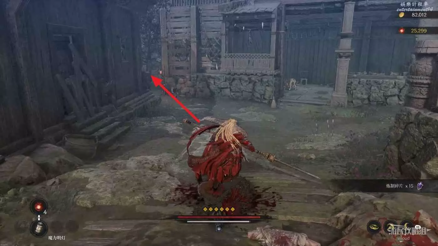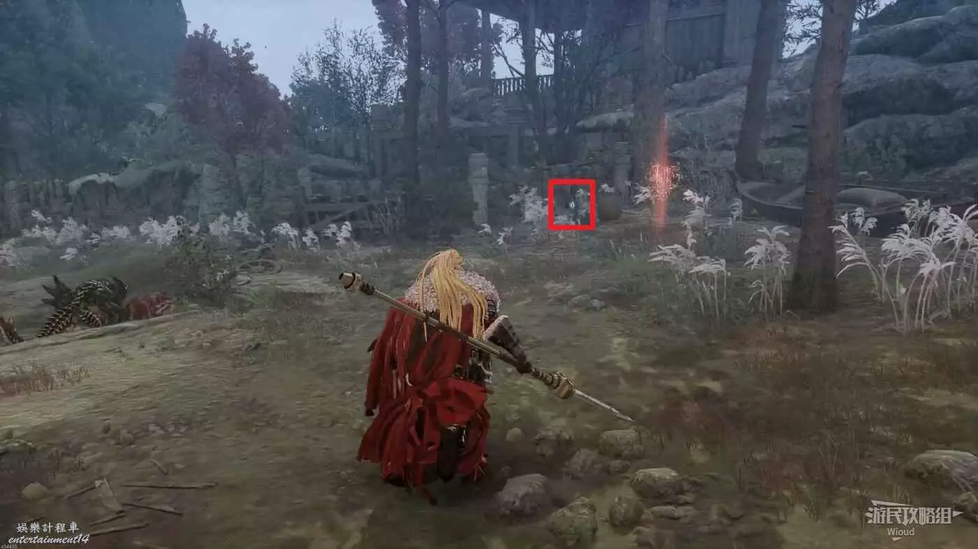 完事面對木門,右側可以看到一個木頭架子,架子右側藏著本地圖第二個【鬼石】。