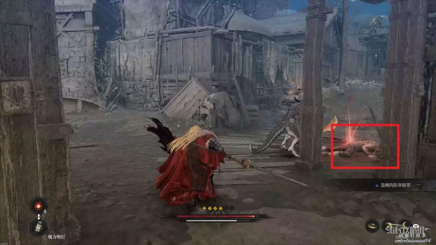 不遠處道路左側發紅光屍體可以拾取一個靈魂之類粉末。