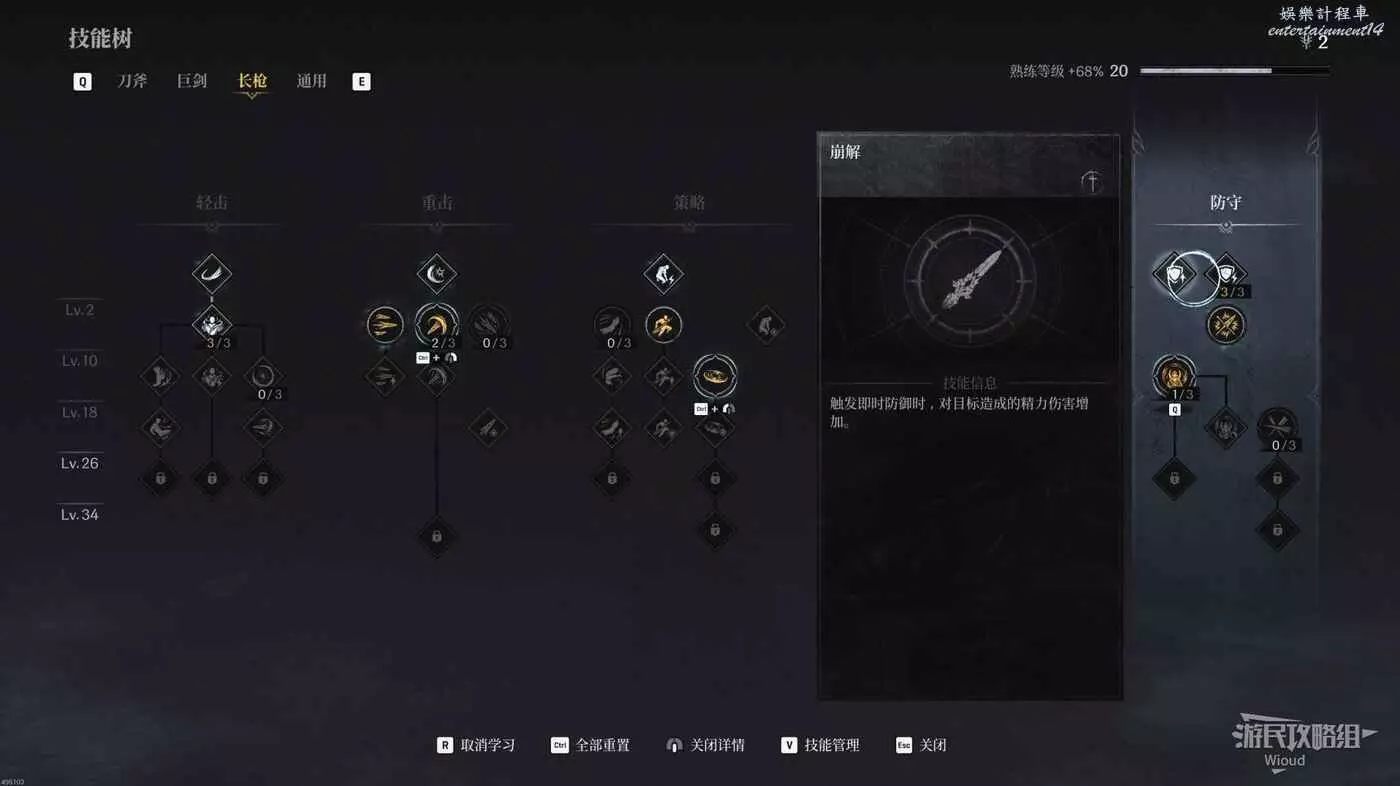 其中必點的則是防禦板塊的【崩解】與【泰然】,這倆技能的作用是在及時防禦時不斷削弱敵人的精力值。