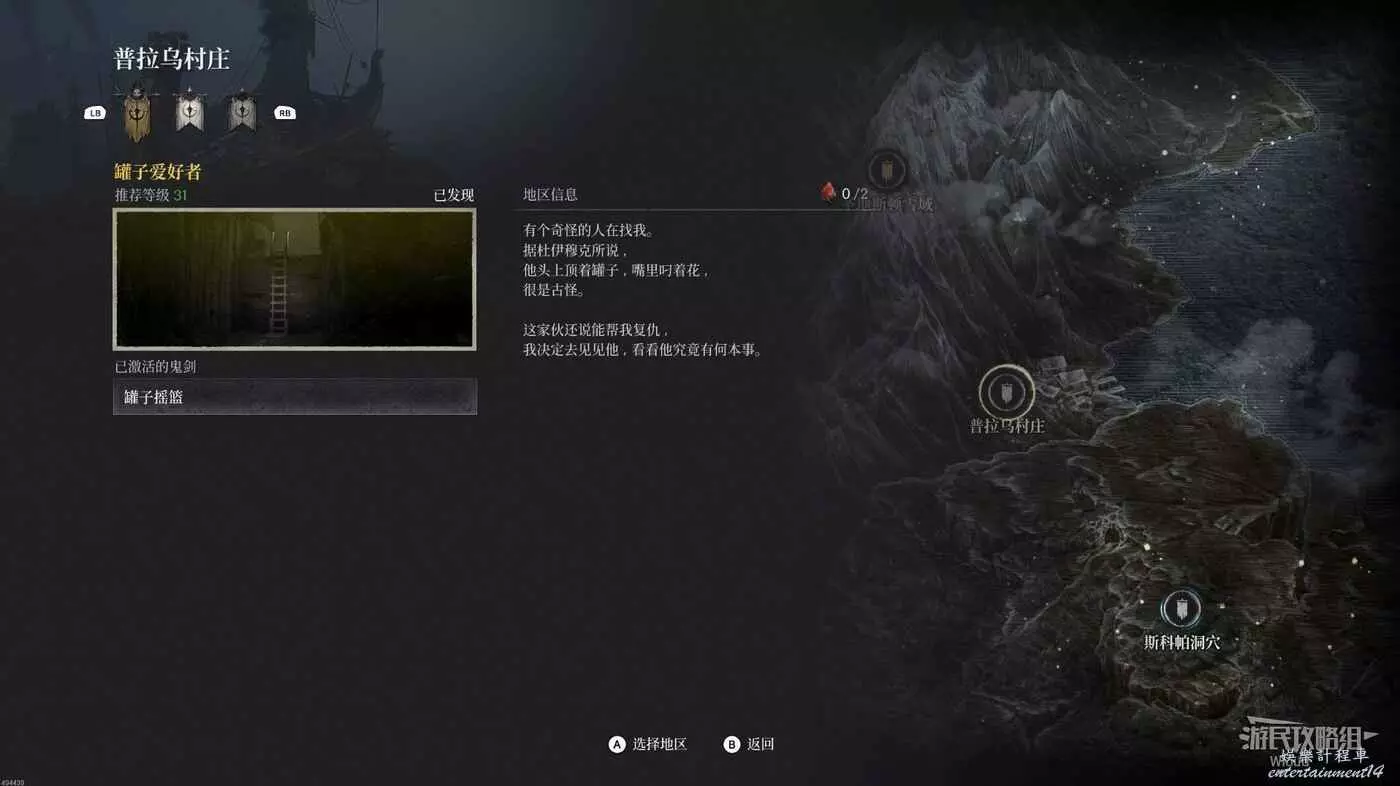 完成地圖【普拉烏村莊】的所有探索後。回到邊界縫隙與右側孫子對話,選擇【支線任務】接取【罐子愛好者】。