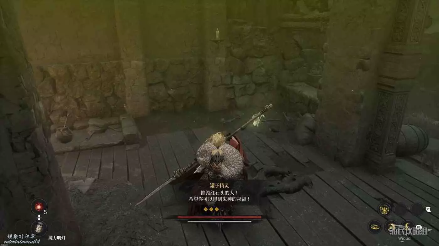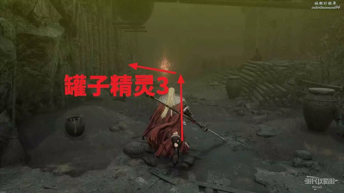 進入地圖先爬梯子,啟動前面第一個篝火,然後與罐子商人對話得知我們需要在這張地圖找到六個罐子精靈,而罐子精靈都躲在罐子裡,需要將罐子打破才能讓其顯形。