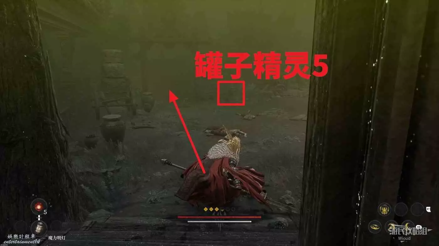 離開房屋看向正對面的拱門,拱門右側的罐子可以找到第五個罐子精靈。