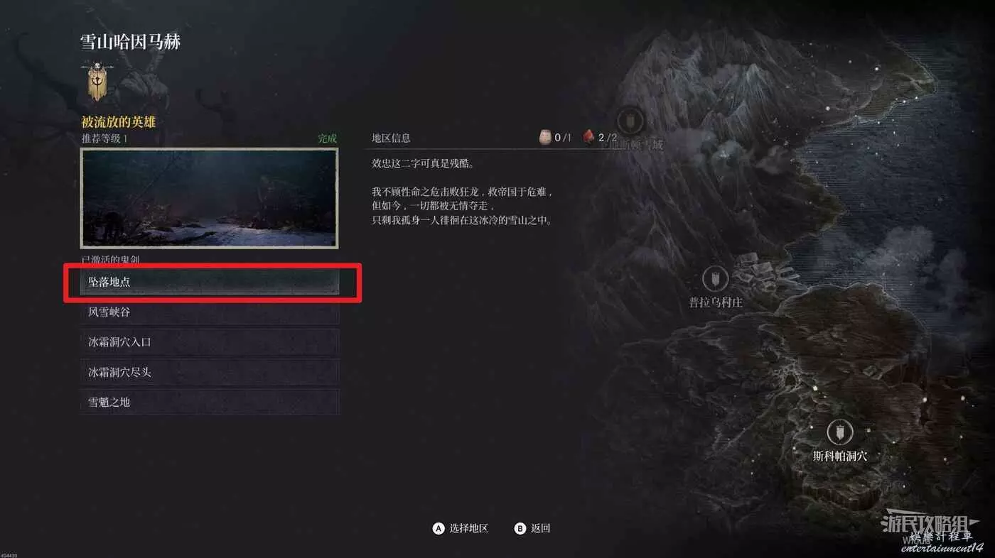 與邊界縫隙的石碑互動,傳送到雪山哈因馬赫的【墜落地點】。