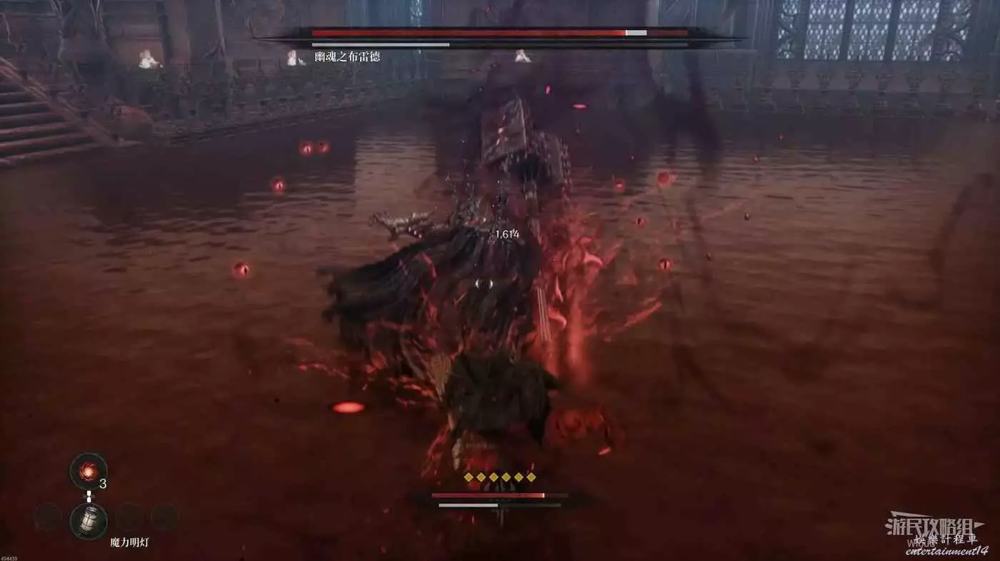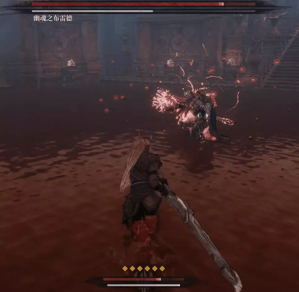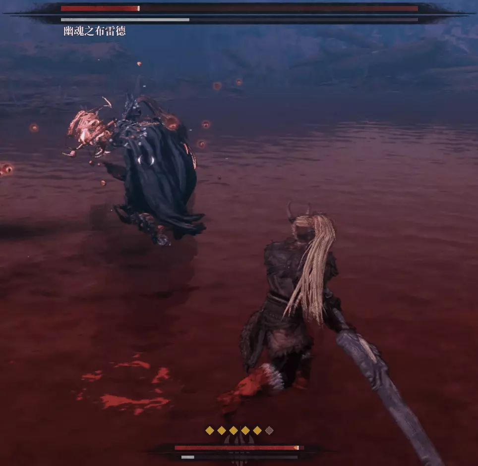 但也有新招,佈雷德會召喚一把劍出來以瞬移的方式朝玩家打出四次斬擊,最後還是釋放無法防禦的爆發攻擊,看到這招時做好第四招接反制或躲避的準備。