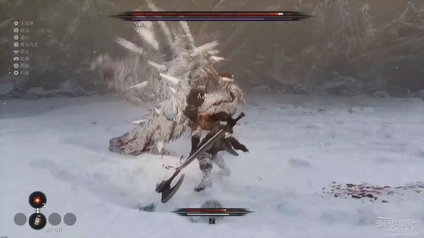 而動作苦手就原地防禦,本作的防禦非常超模,只要你的體力條還在,敵人就無法破你防,等敵人用完招你直接鬆手看到體力條恢復到三分之二時直接朝敵人用重攻擊,然後再次進入防禦狀態。