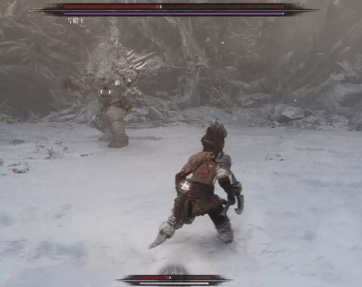 如雪魈王會直接從地面搬出一大塊石頭,跳躍砸向玩家,讓我想到某個虎姓瘋男子。