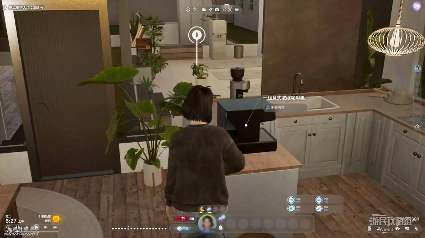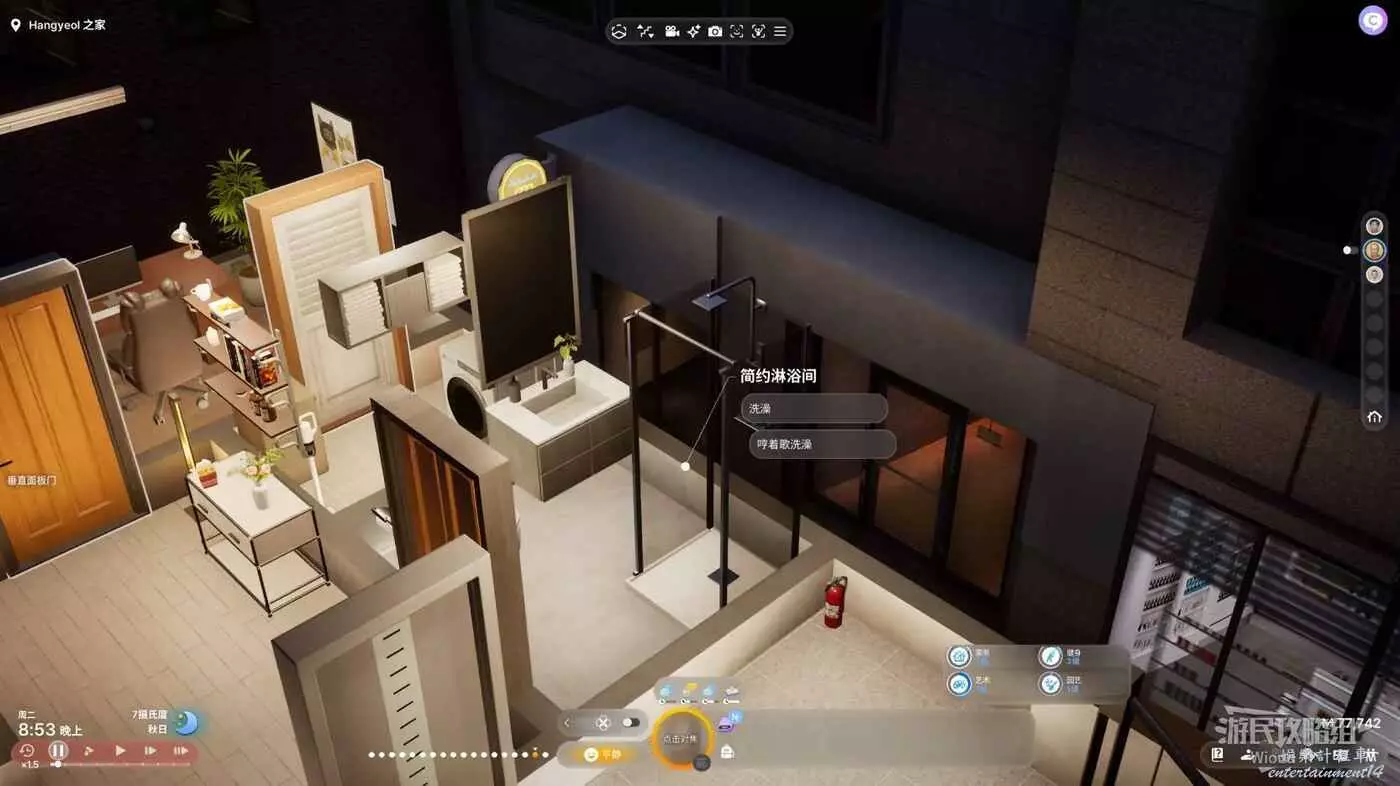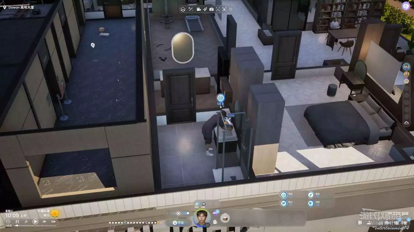 5、遊戲的次要功能表,從左到右依次是【切換牆壁顯示】、【切換房屋層數】、【相比模式】、【濾鏡選擇】、【拍照模式】、【面部捕捉】、【動作捕捉】與主菜單;相機模式主要切換玩家視角,拍照模式就是拍照。