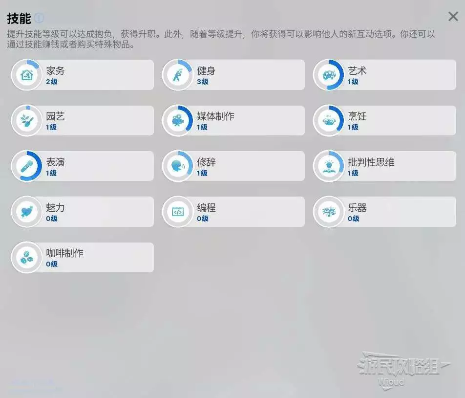 技能:後期小人自主提升的能力,如烹飪技能在小人做飯時得到增長,技能等級的提升會影響到小人的