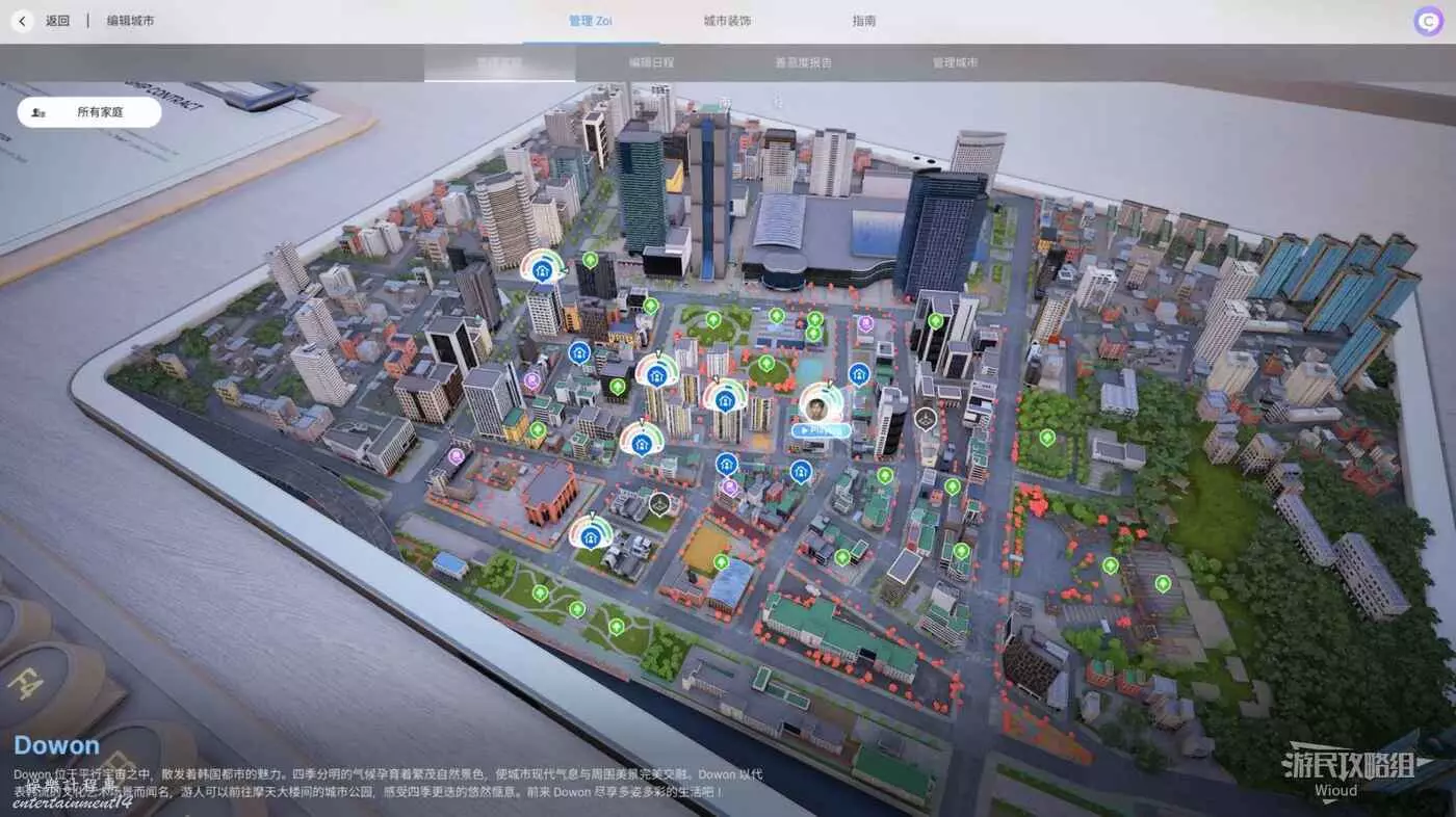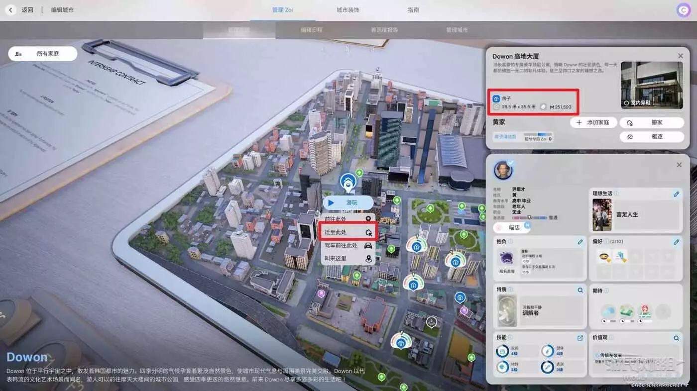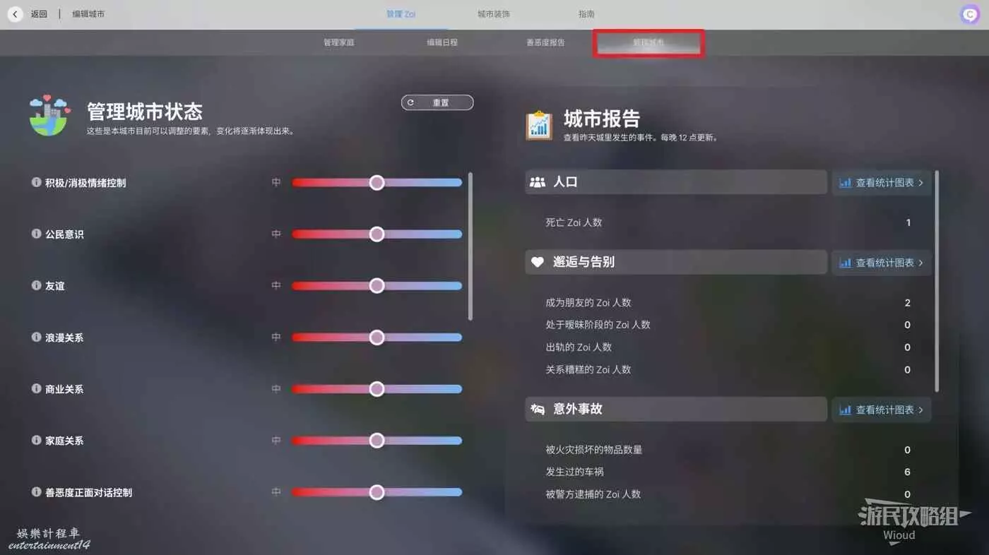 【M】快速鍵可以打開【編輯城市】的詳情頁,此處可以看到城市裡生活所有小人家庭,也可以調整城市的外觀和各種數值。