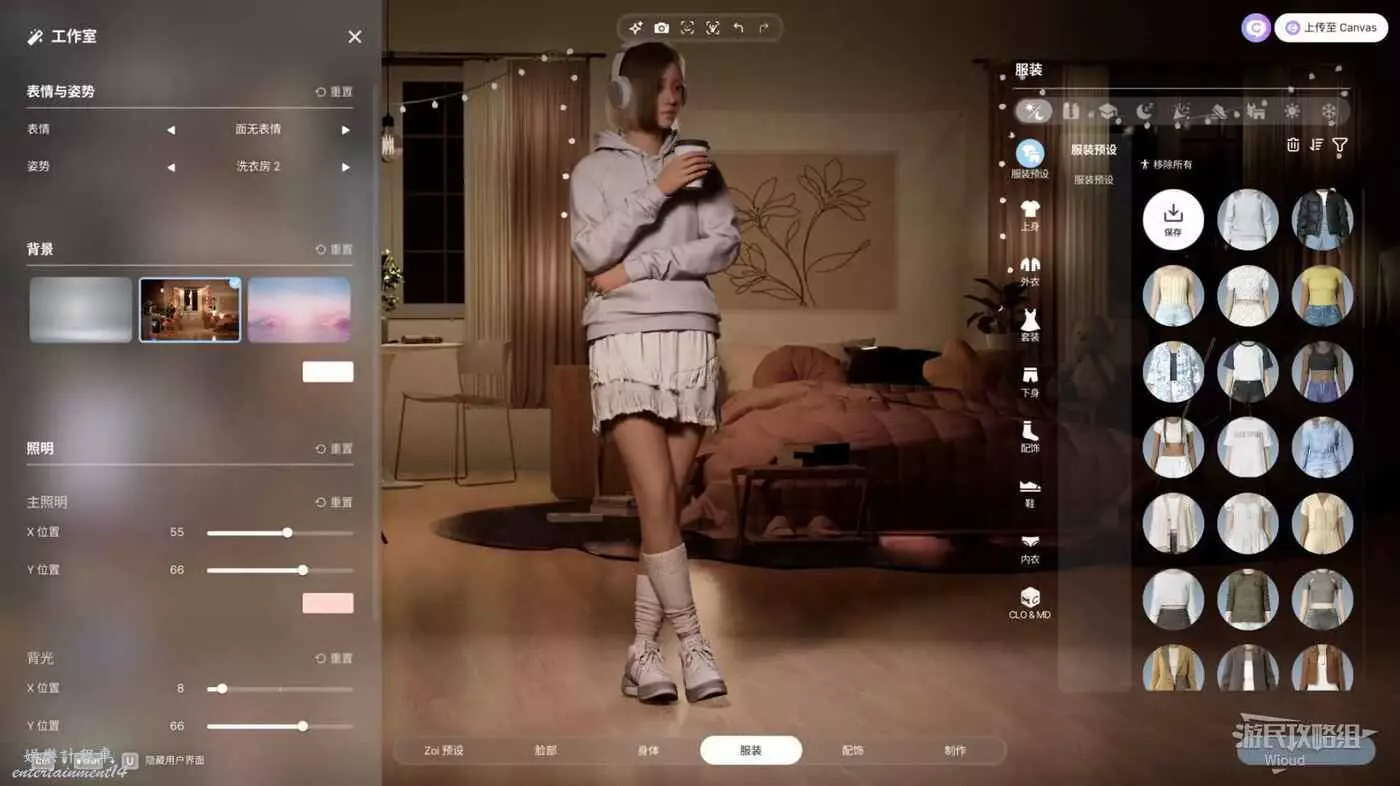 捏人介面左下角點擊【工作室】圖示即可進入工作室模式,也就是小人模特模式,可以切換背景、小人的姿勢與表情,主要是發佈各種小人的精緻照片。