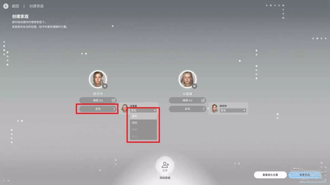 捏完人可以在建立家庭頁面選擇兩個小人之間的關係,如果不想建立多個小人則點擊右下角的藍底【建立家庭】。