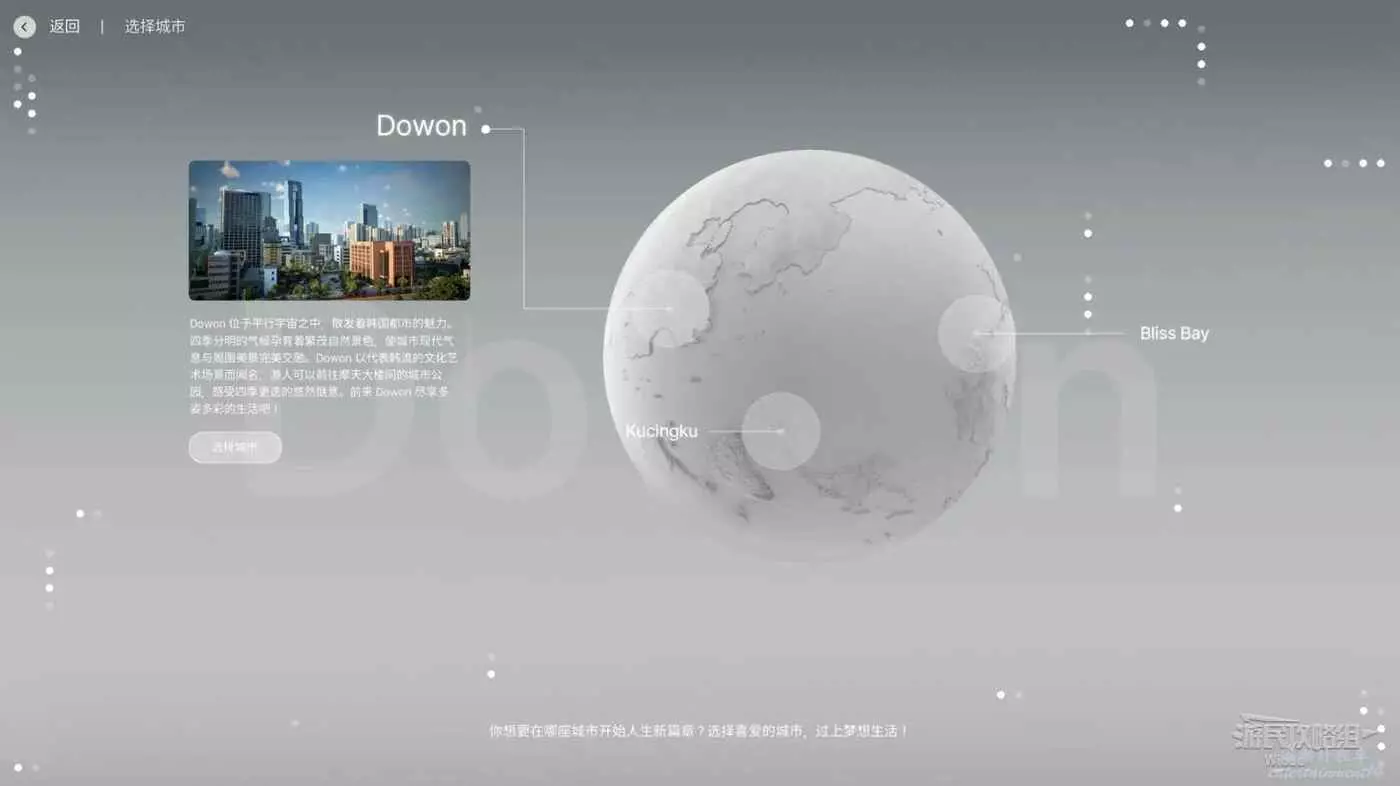 正式開始遊戲前,玩家還需要選擇一個城市落戶,目前EA版本總共有2個城市可供選擇,左側為現代都市風格的【Dowon】,右側為美國西海岸風格的【BlissBay】。