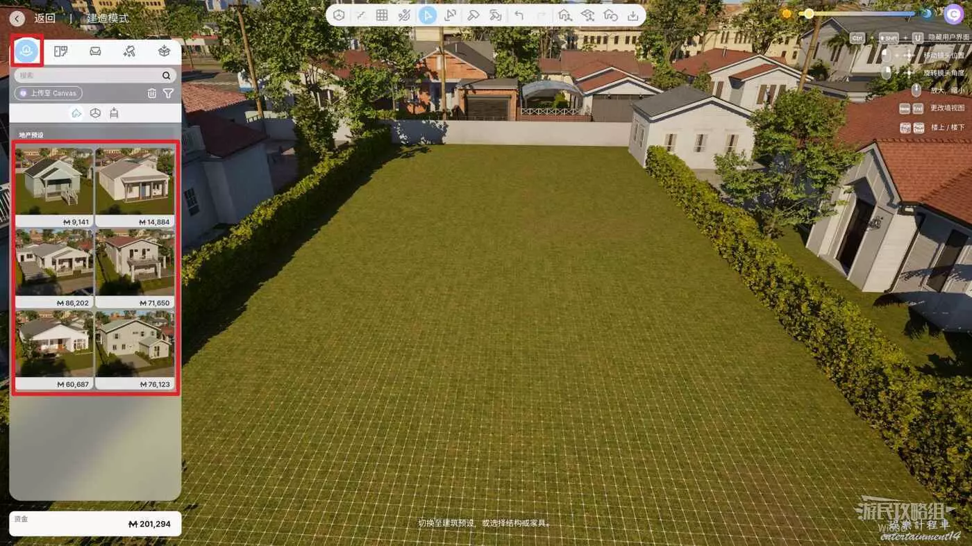 對於大多數懶人玩家,可以直接選擇左側功能表的【預設】,然後選擇任意預設放置到地塊上,我們可以直接得到一個完成的房屋。