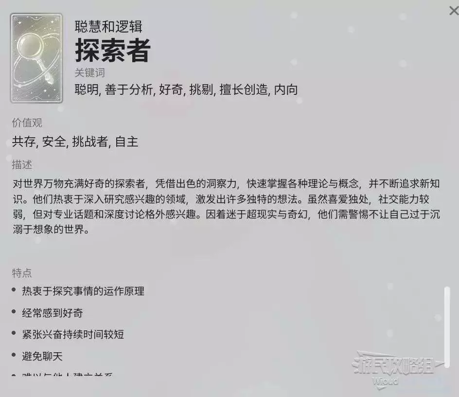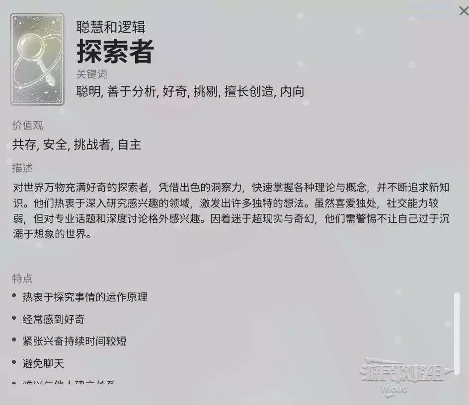 特質:捏人階段選擇後無法更改,不同特質會給予小人不同的內在邏輯,也會影響小人早期的價值觀和偏好並進一步的影響到小人的自主行為和產生這些行為的情緒與需求。