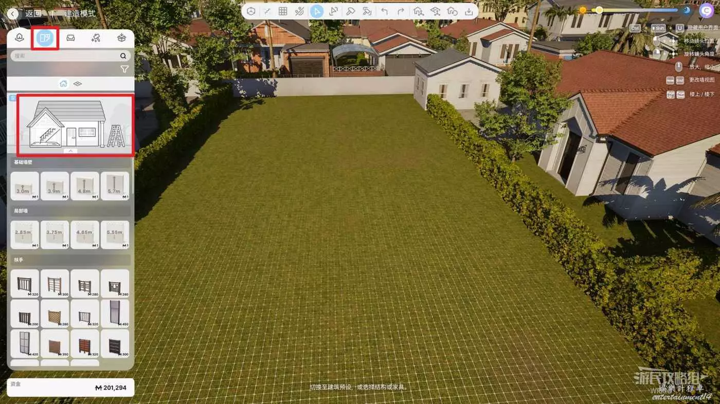 明白上頁所有建築工具的具體用途後,將目光對準左側的建築菜單,點擊左上角紅框所示的第二個【建築】圖示。
