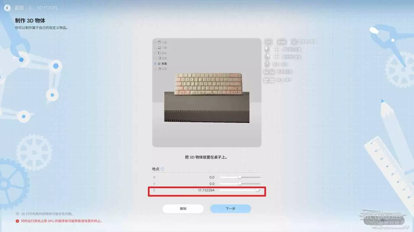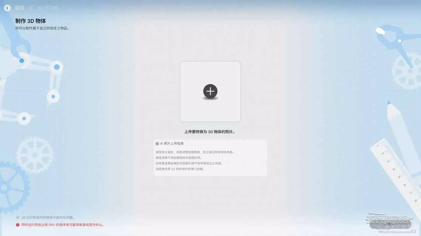 在螢幕下方彈出的【油漆】、【磚】或【木板】等材質裡選擇一種,左側選擇材質的顏色,右側可以【我的貼圖】位置使用關鍵字生成AI貼圖或是將現實裡的圖示上傳上去生成個性化貼圖。