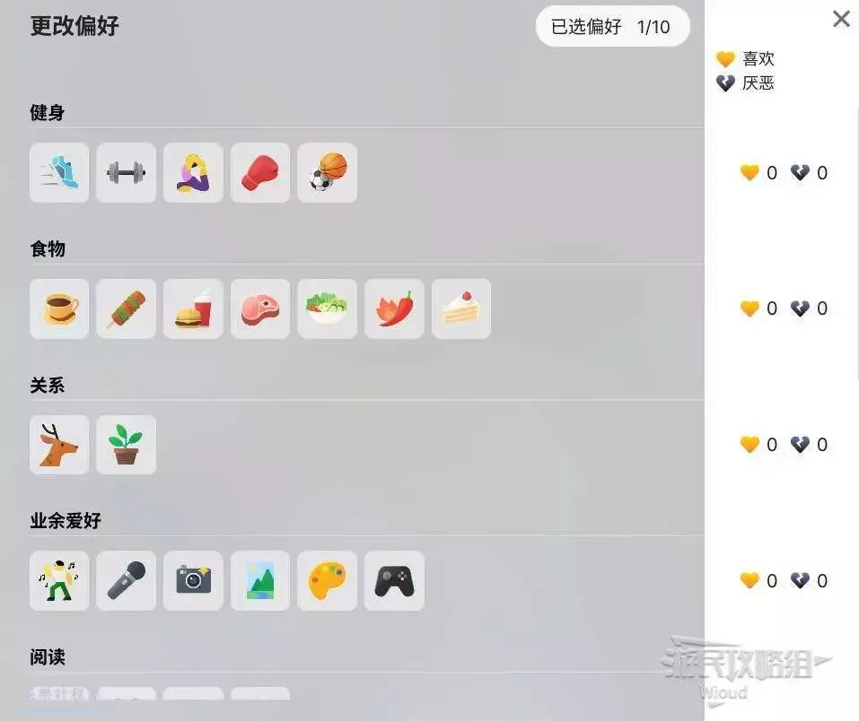 偏好:可以選擇10個小人喜歡以及厭惡的偏好,小人自主行動是會主動做自己喜歡的偏好,當被迫做自己厭惡的偏好會受到情緒壓力。