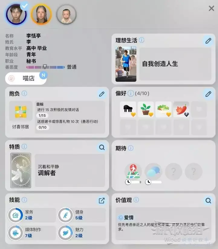 理想生活:隨時在人物卡進行更改,理想生活是小人總的發展目標,就目前版本而言理想生活不會特別影響什麼東西。