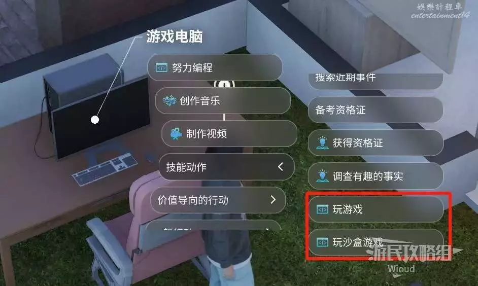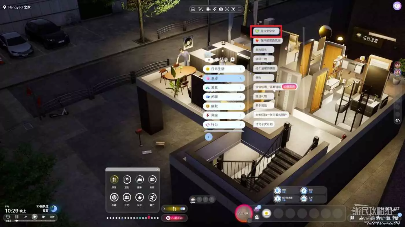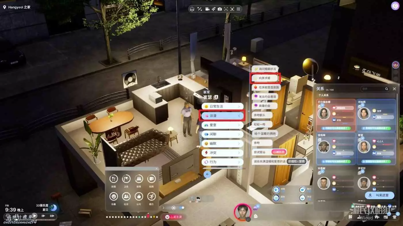 【滑鼠左鍵】按一下場景中可互動的傢俱彈出互動選項,左鍵按一下選項開始對應的選項動作。