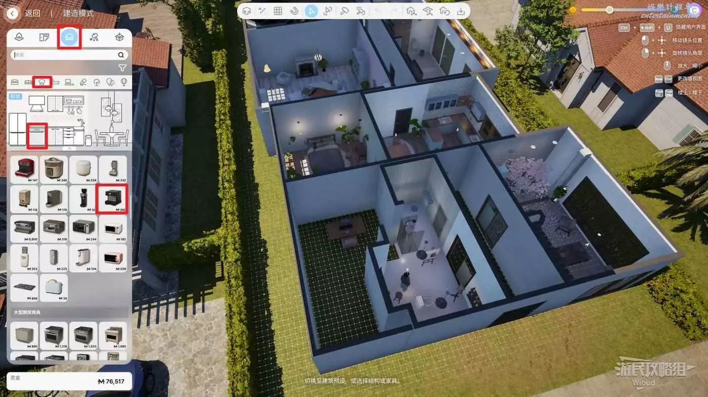 但需要注意的是,這一塊只會顯示房屋外部建築的傢俱,不會顯示軟裝的桌子、電視等。