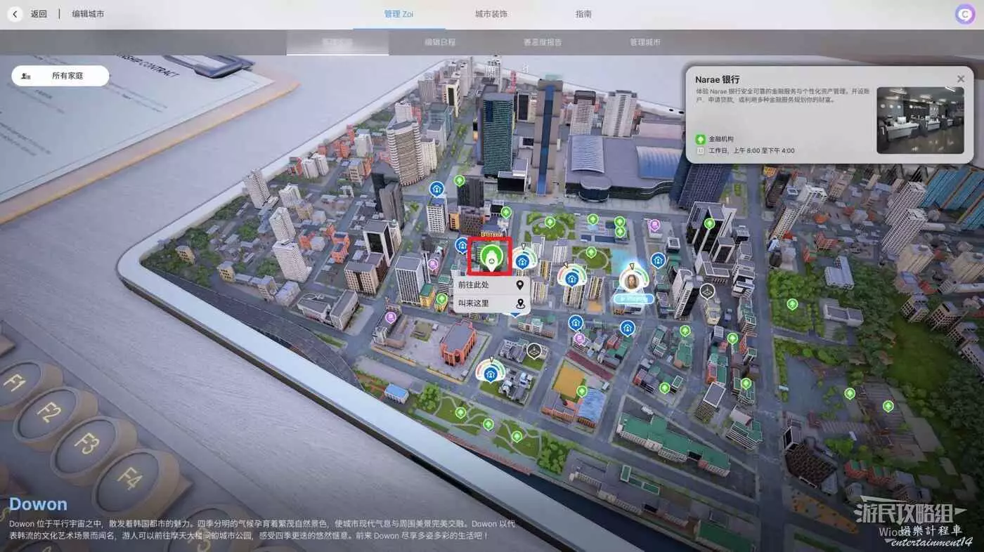 3、主要的功能表列,從左到右依次是【新手指引】、【編輯城市】、【建造模式】、【人物卡】與【關係選單】,這些剛才基本都有介紹。