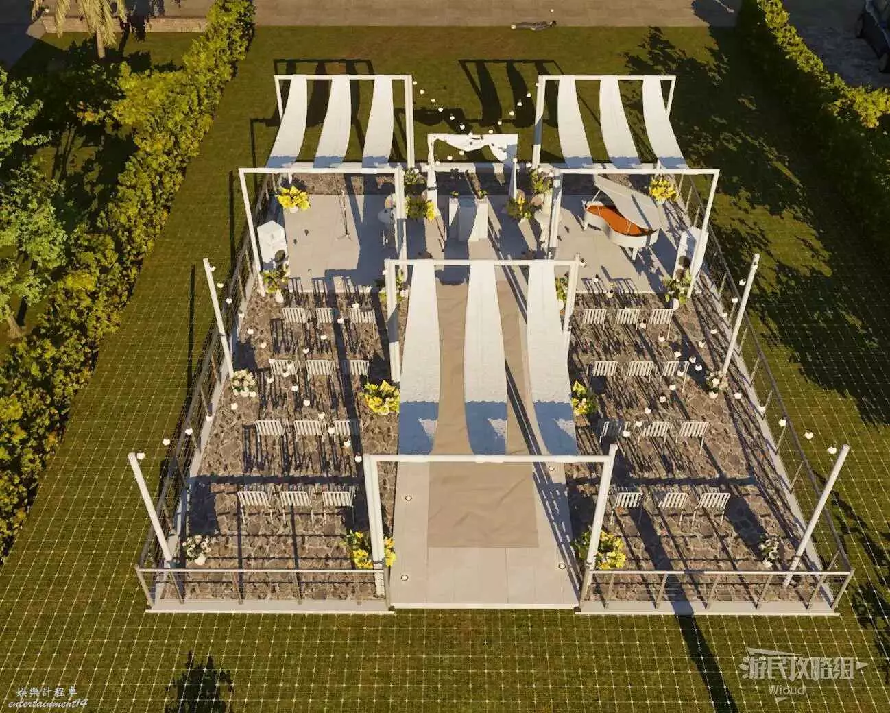 將游標移動到中間場地,此時游標會顯示成一根柱子,按一下左鍵將柱子放置在地面,然後另一側移動游標,可以發現牆壁延展開來。