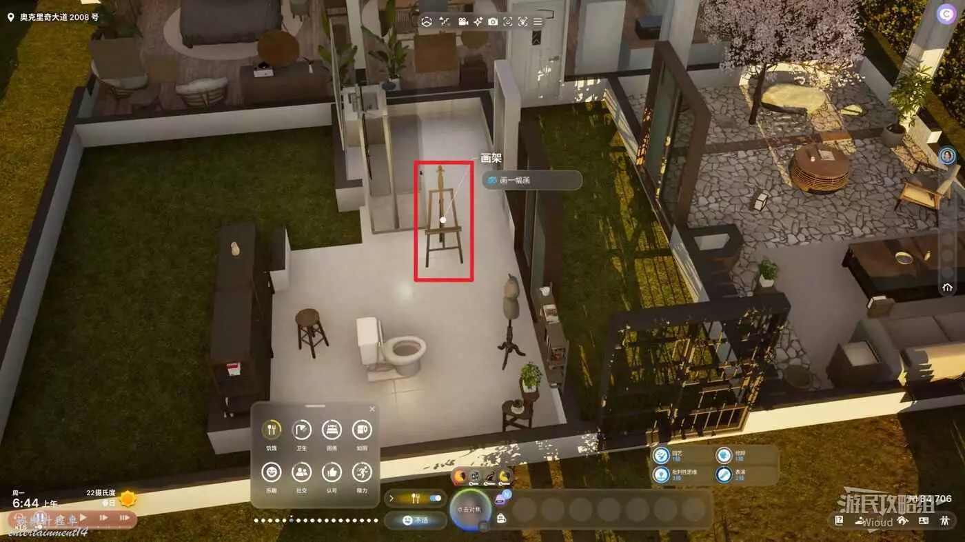先進入建造模式通過【傢俱】-【愛好】-【藝術】放置一個畫架。