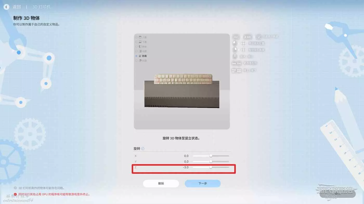等待系統製作完成,然後調整Z軸將物體調整為正向豎立狀態,點擊下一步。
