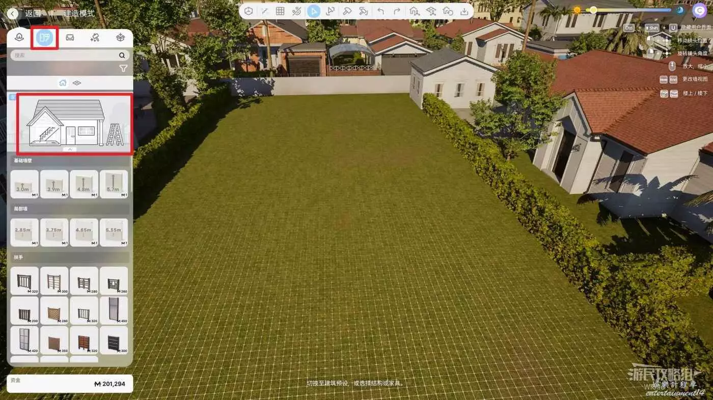 明白上頁所有建築工具的具體用途後,將目光對準左側的建築菜單,點擊左上角紅框所示的第二個【建築】圖示。