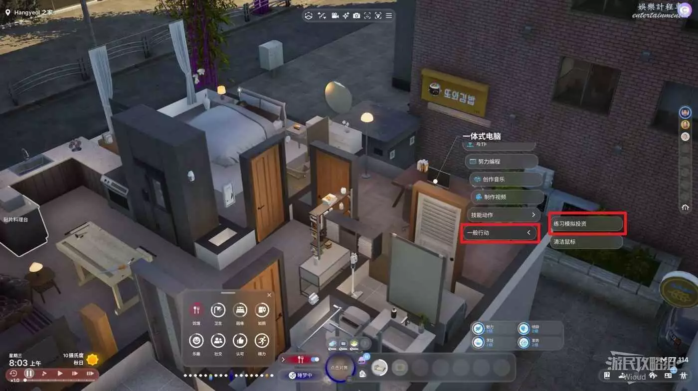 條件比較簡單,打開電腦可以找到【模擬投資】,直接在手機的事業APP找一份全職工作,除了消防員其他都可以幹。