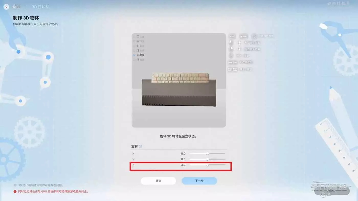 等待系統製作完成,然後調整Z軸將物體調整為正向豎立狀態,點擊下一步。
