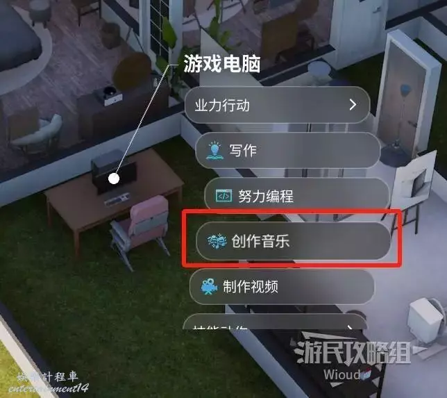 與電腦互動選擇【創作音樂】製作一段音樂提升技能,此外製作好的音樂還能賣錢。