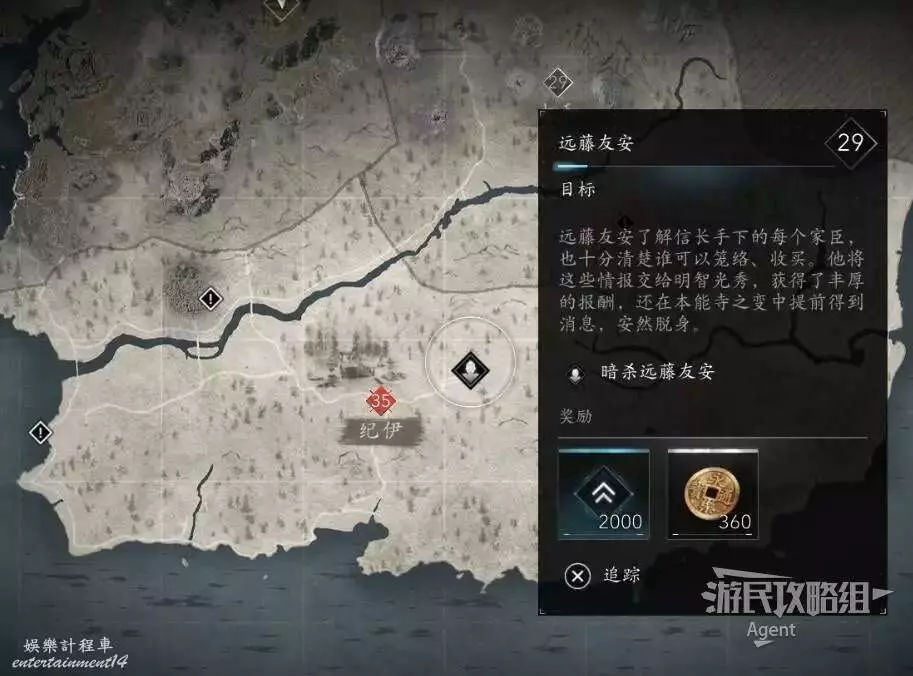 刺客教條 暗影者 背叛者支線任務攻略 29 3 月 2025-03-29 廣告 作者:Agent 來源:遊民星空 支線-背叛者 使用彌助,在近江的大津,三井寺裡找到堀秀政。 先刺殺山城南面的兩個背叛者。 到紀伊發現堀秀政已經解決了第三個背叛者。 回去找堀秀政對話,然後去刺殺剩下的四個背叛者。有些人對話後可以選擇是否放過。 七個背叛者都解決後,回去找堀秀政對話,注意有戀愛選項。