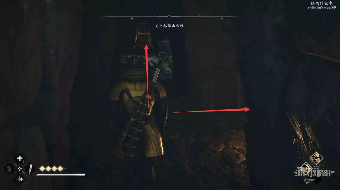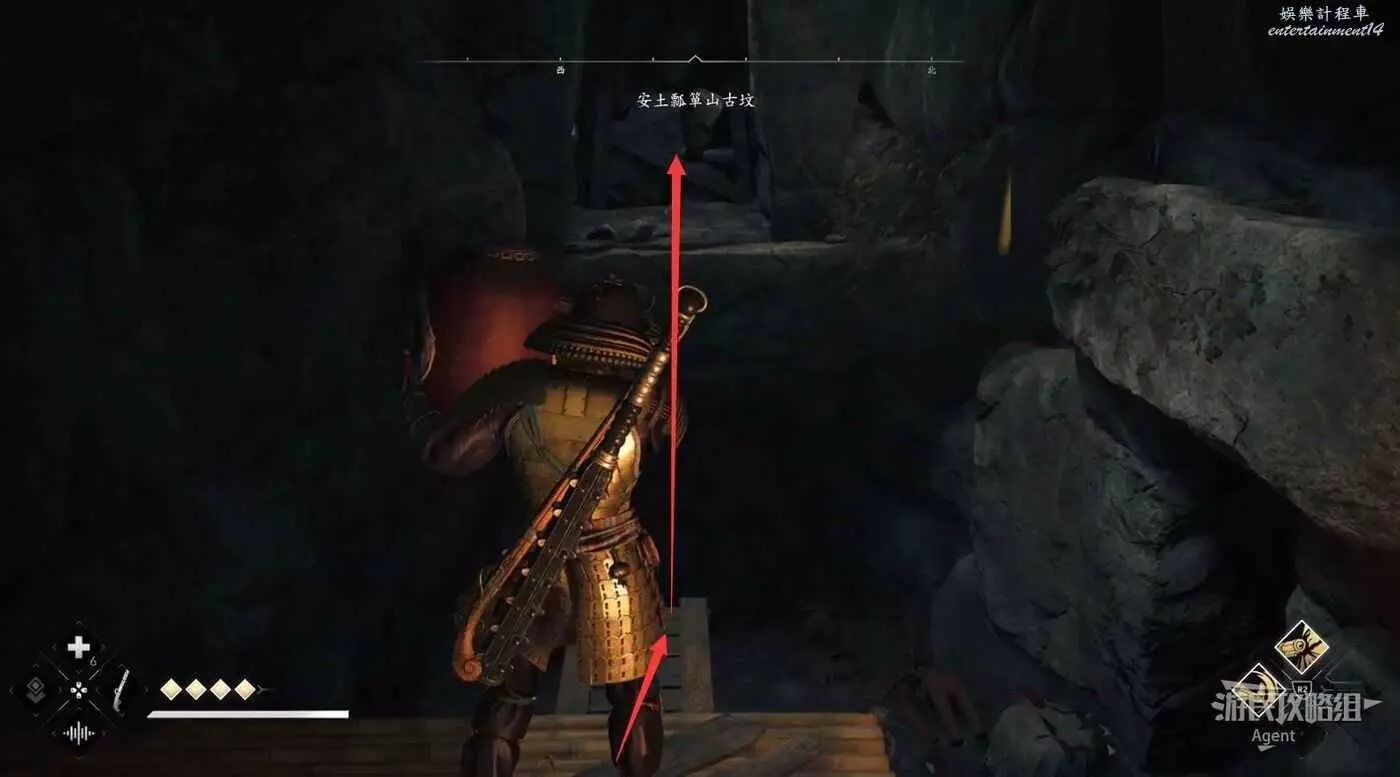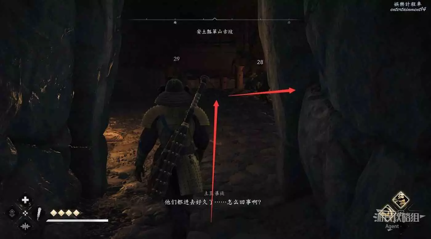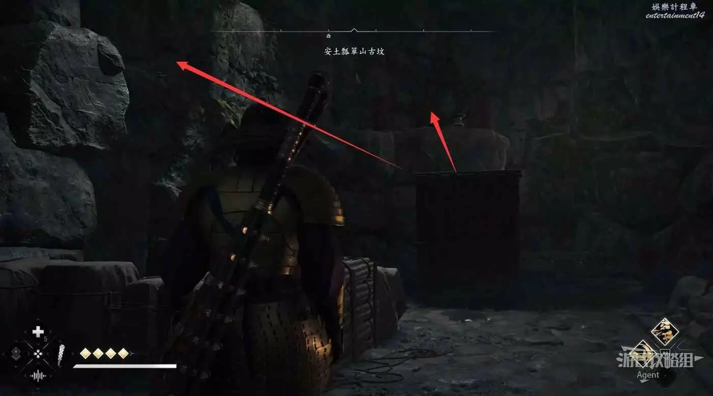 過來後先放下炸藥,射爆下面右側的炸藥,進去拿個小寶箱。