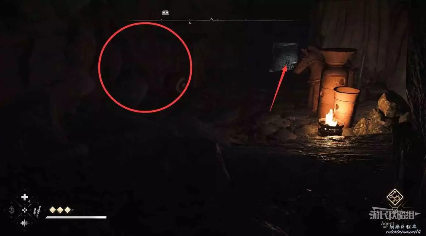 往前走幹掉強盜,然後右拐。(左邊可回到剛才來的路)