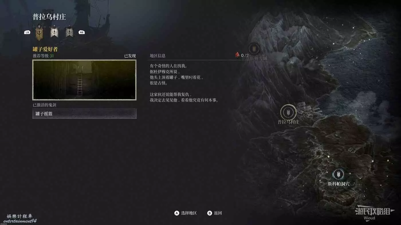 完成地圖【普拉烏村莊】的所有探索後。回到邊界縫隙與右側孫子對話,選擇【支線任務】接取【罐子愛好者】。