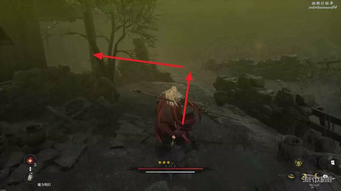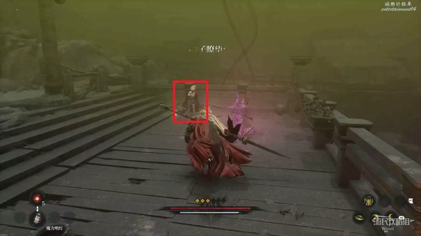 經過木橋從前面屋頂左側的梯子下去,往左走經過第二段木橋,這段木橋會刷出大量敵人。