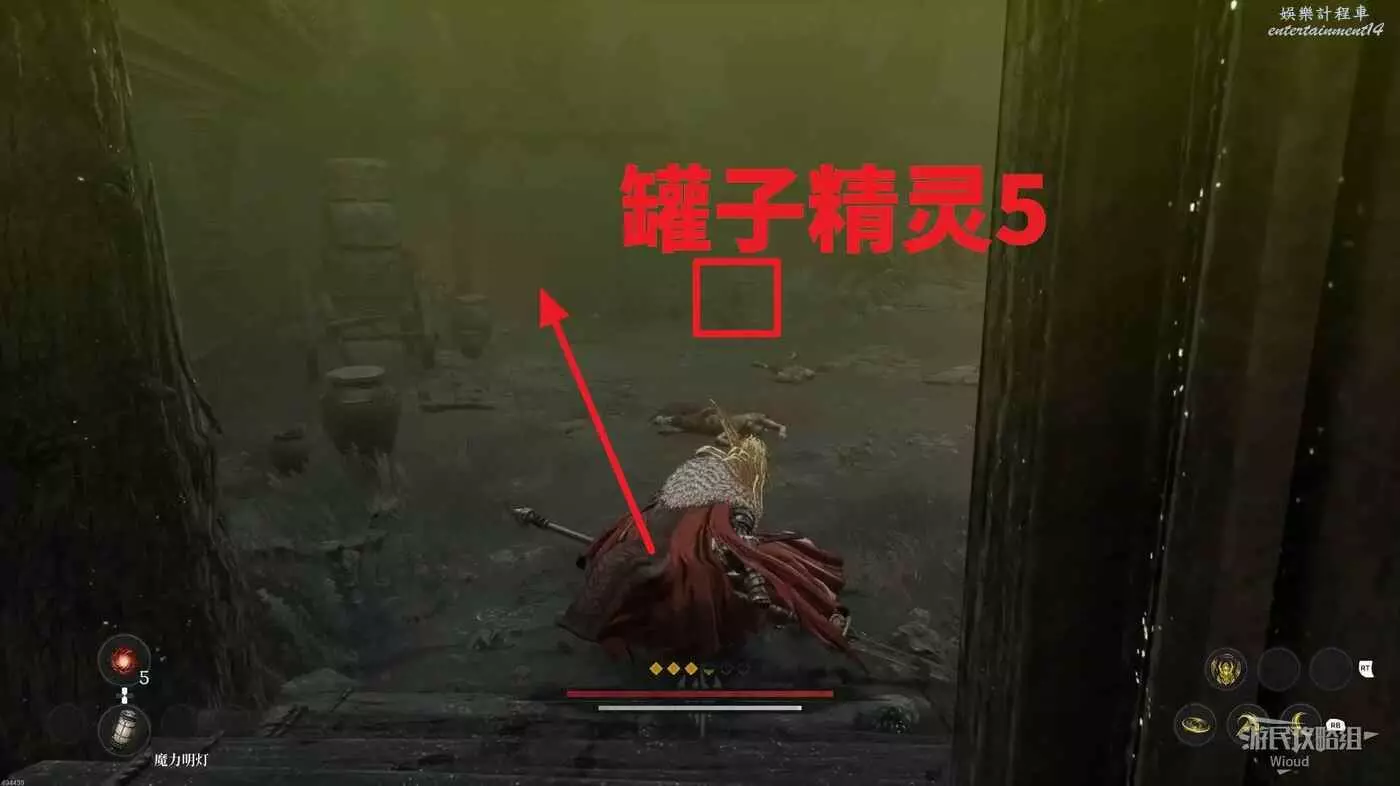 離開房屋看向正對面的拱門,拱門右側的罐子可以找到第五個罐子精靈。