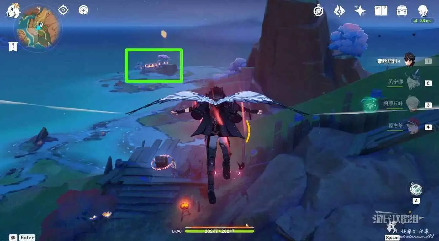從傳送錨點所在位置往小地圖的西南角(左下方)飛,可以看到最遠處的小島上有條機械龍。