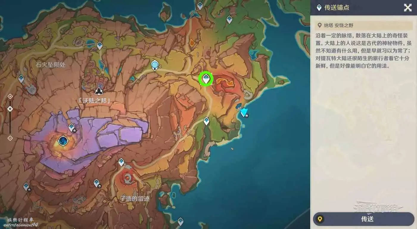 傳送到沃陸之邦火山左下角的地上傳送錨點。