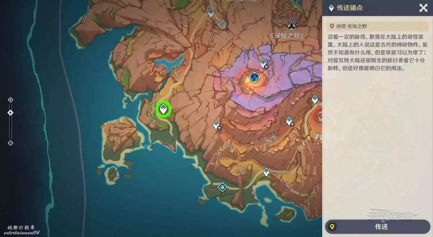 傳送到沃陸之邦火山左下角的地上傳送錨點。
