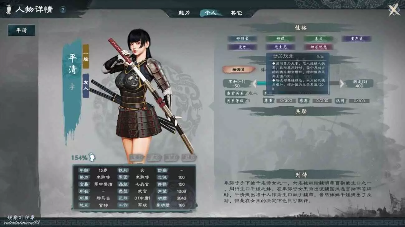 若不喜歡每個月要依序寵倖老婆,也可以創一個擁有全部粉系特性的新女角來當老婆,可以一次搞定三魂提升,這樣雖然比較簡單,但可能會使遊戲體驗到中後期時缺乏與其他真實歷史人物互動的參與感。