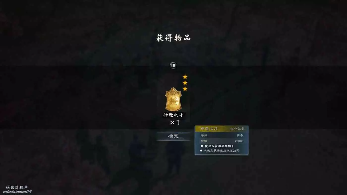 金色證書:神造之才-三魂點獲得速度提升25%。