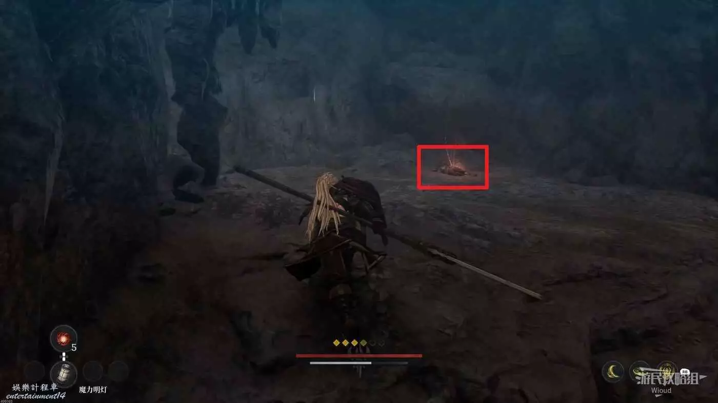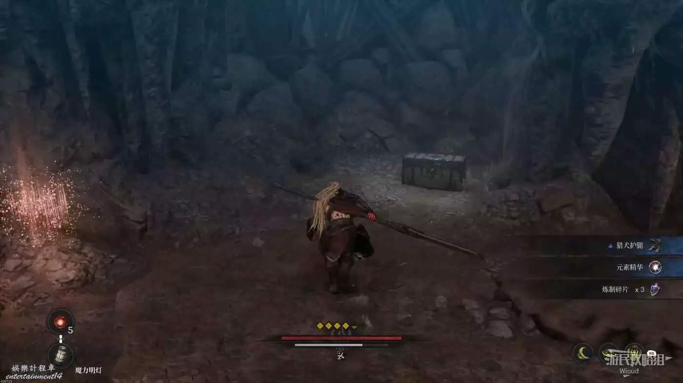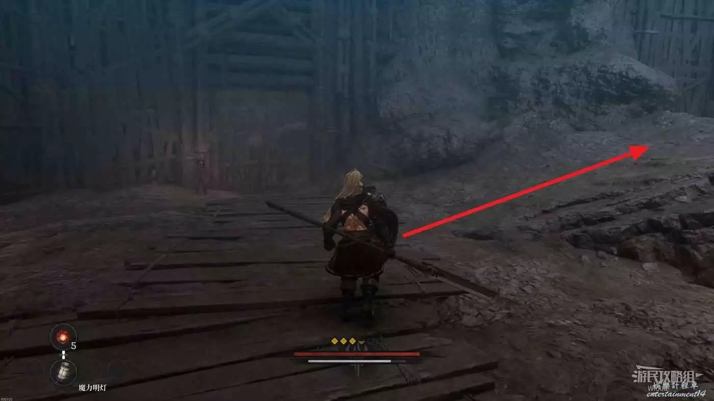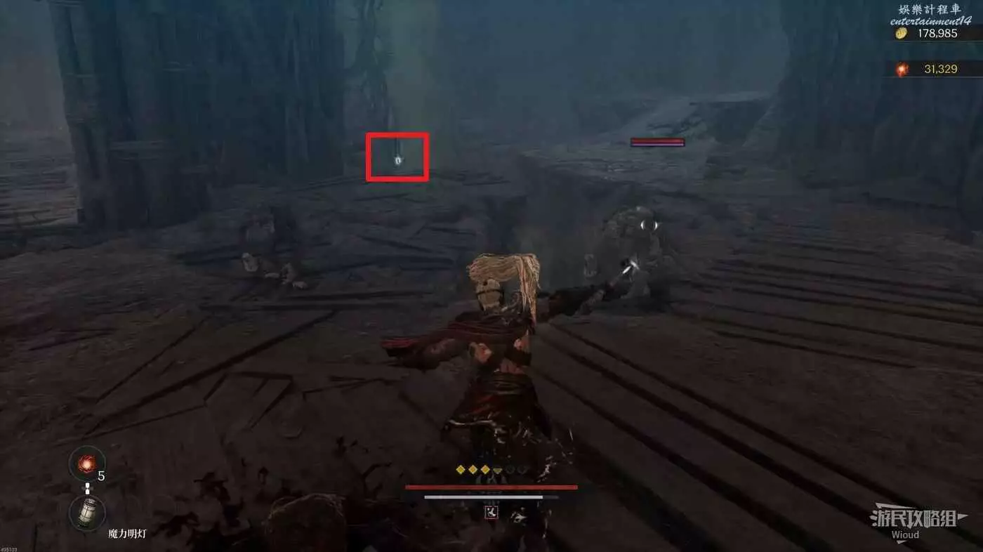 進入地圖先啟動前面的篝火,左前方兩隻猴子的位置有道具可拿,右側木頭樓梯處可以拿一個靈魂之淚粉末。