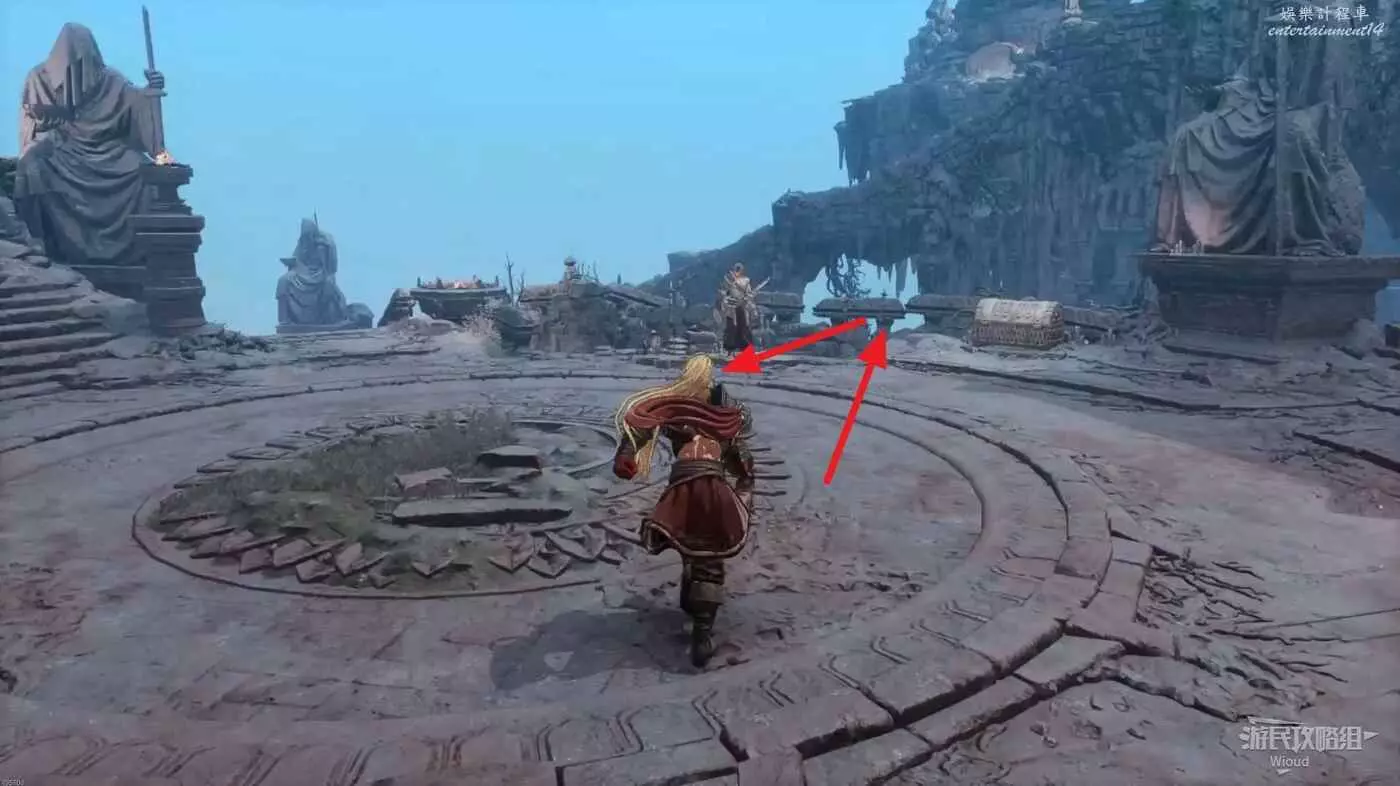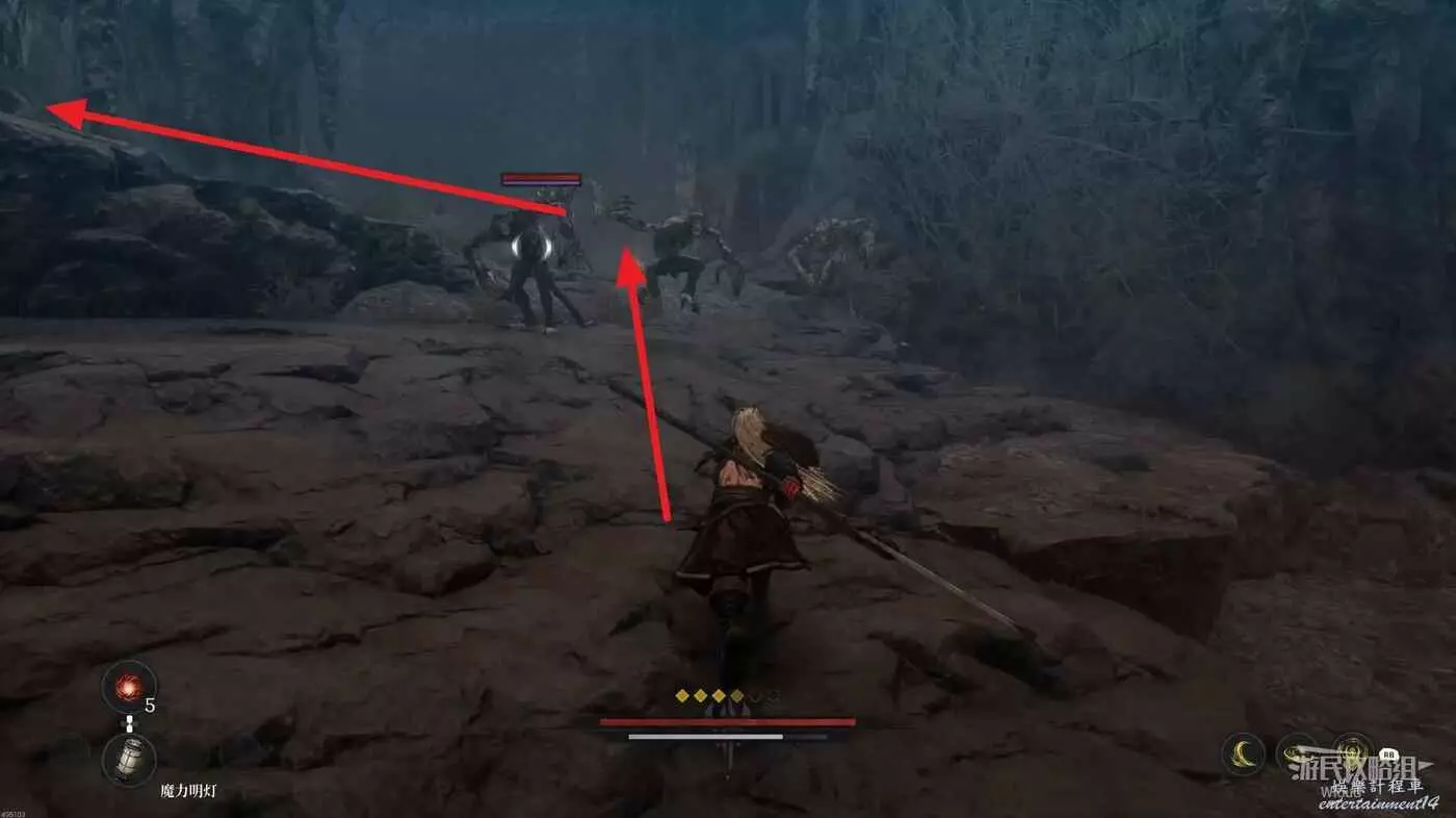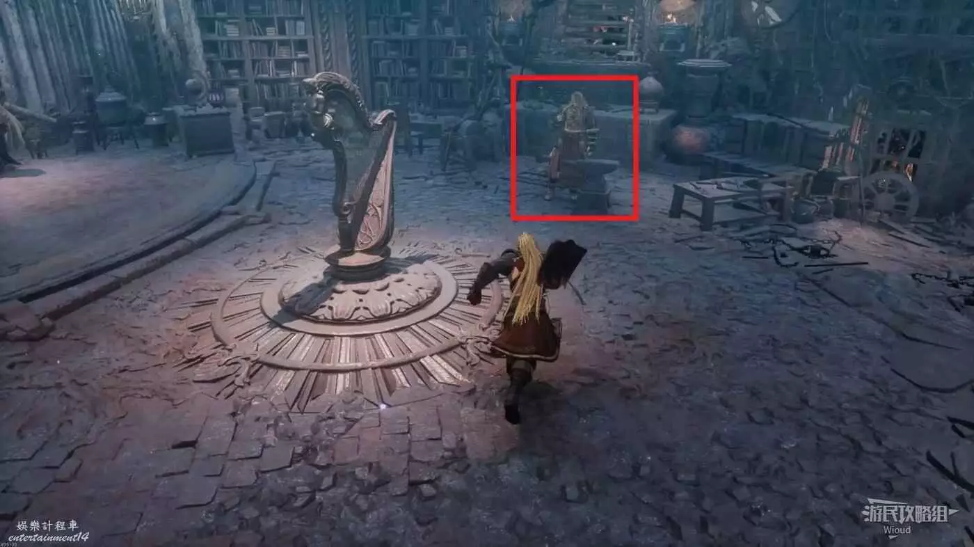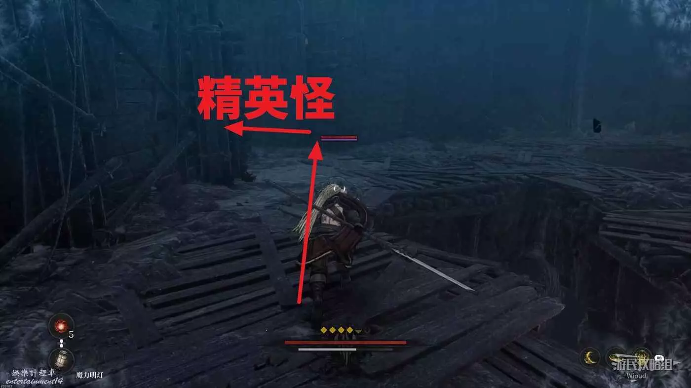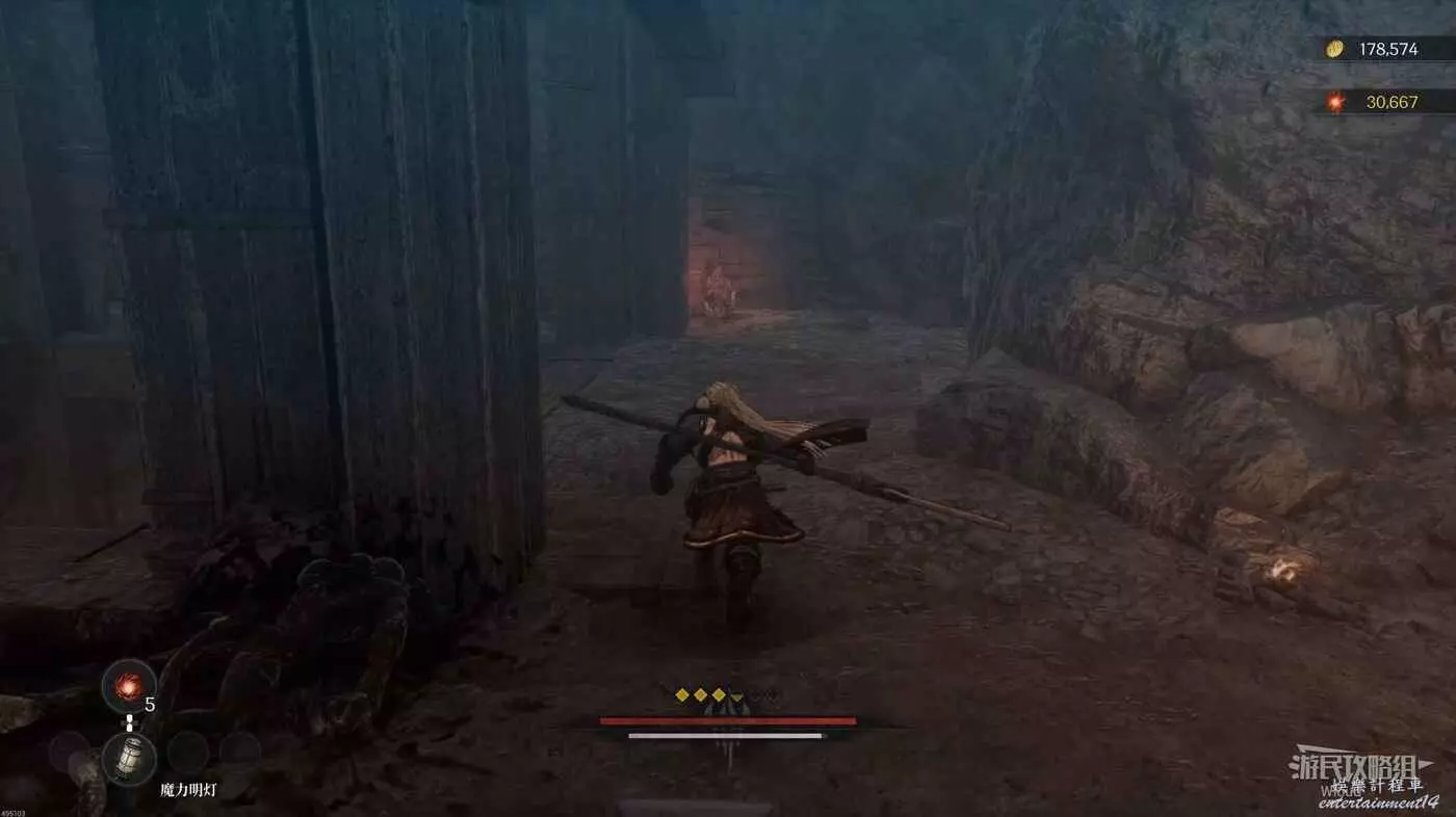 進入地圖先啟動前面的篝火,左前方兩隻猴子的位置有道具可拿,右側木頭樓梯處可以拿一個靈魂之淚粉末。