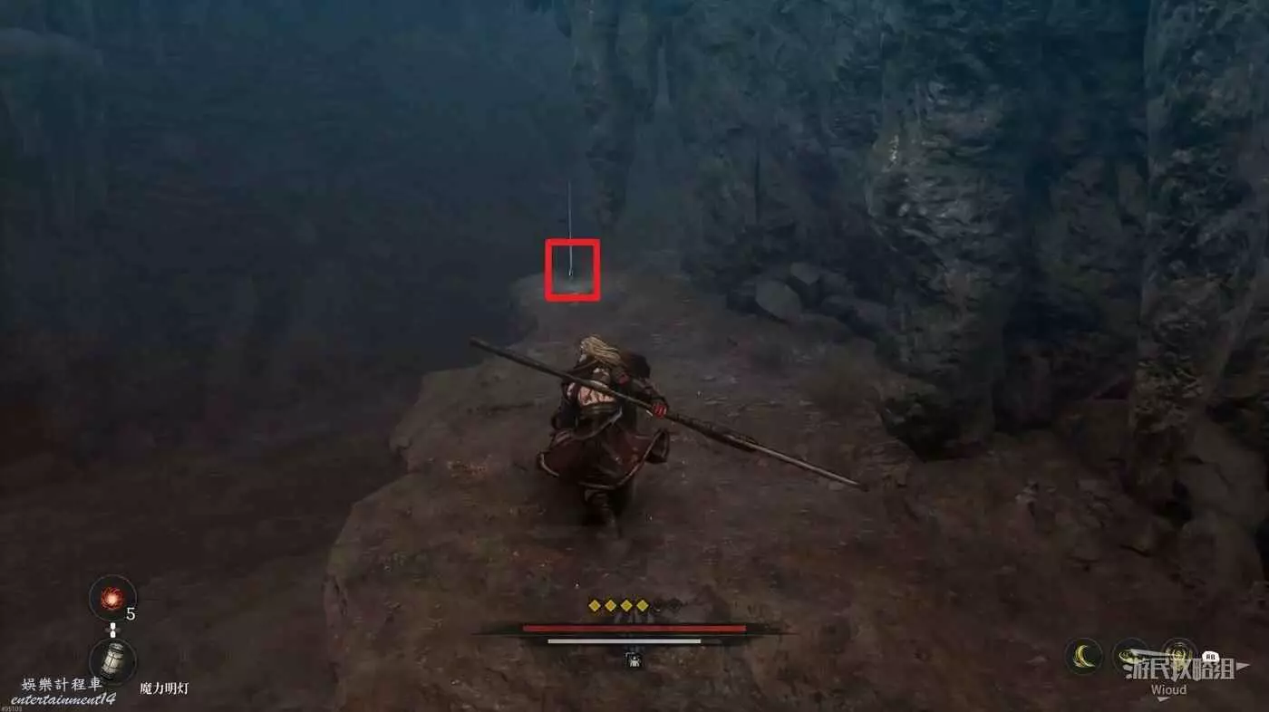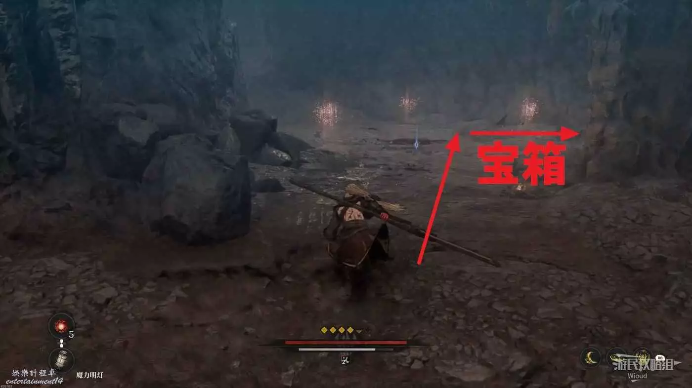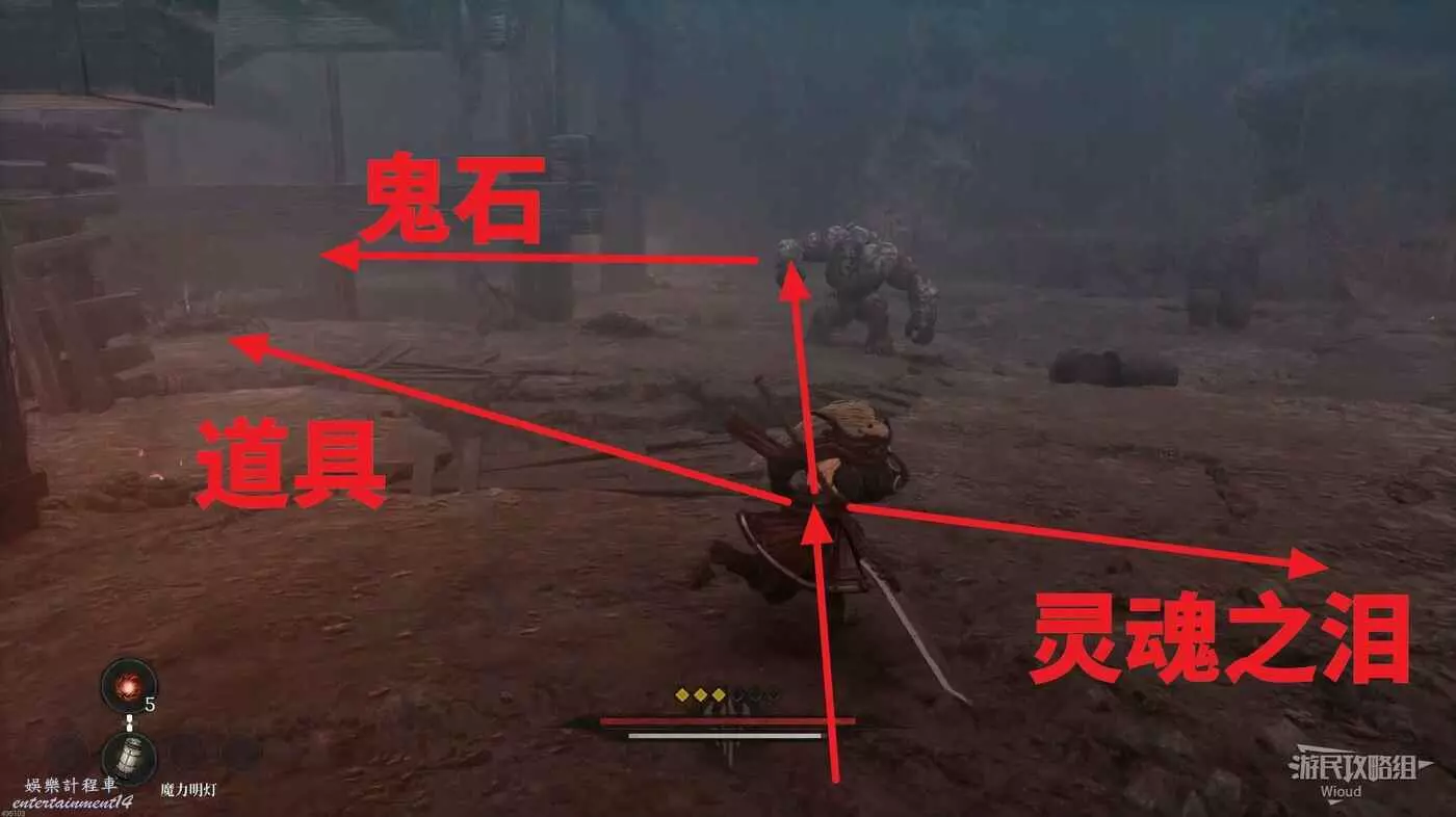 走到前面木架子處左拐角落可以找到地圖第一個【鬼石】。