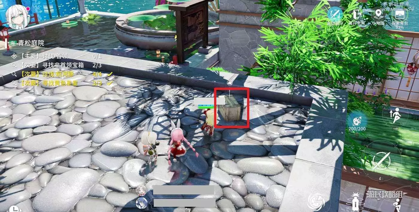 全部收集之後,還回到中間的木橋上,走旁邊的斜坡到達上層。擊敗精英怪,然後淨化第二塊【淨化石】,開啟【非首領寶箱】。